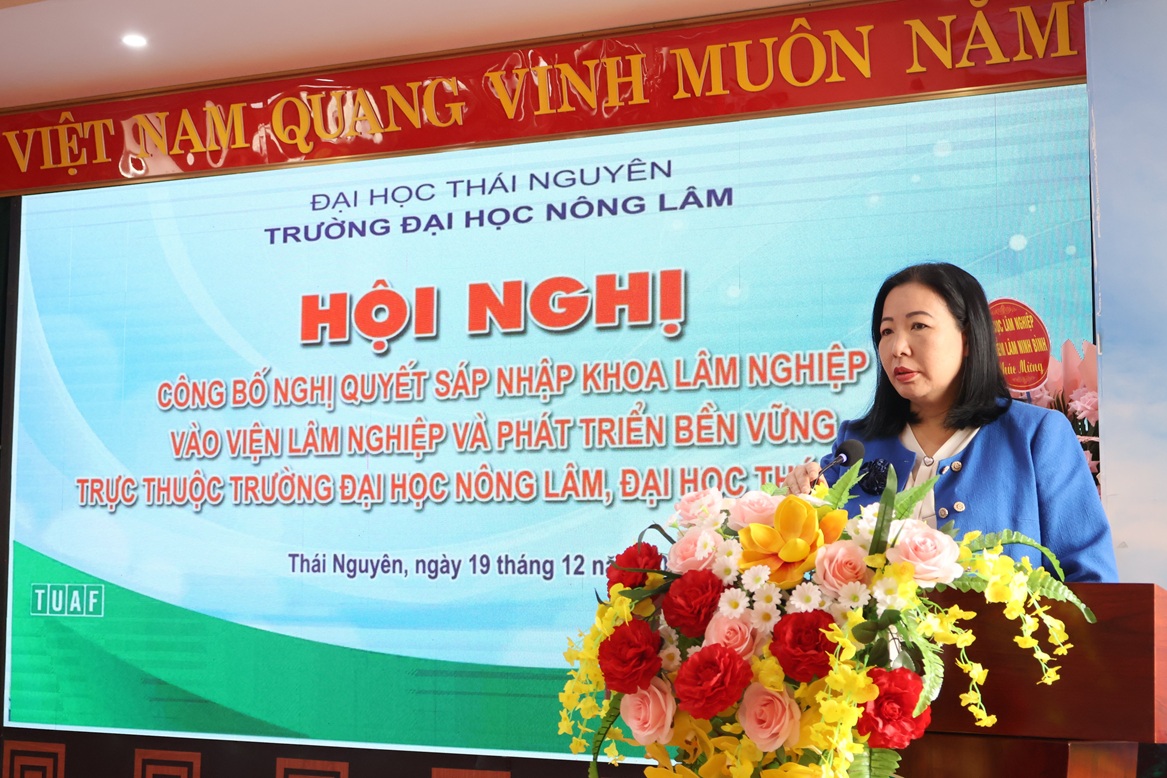 Việc sáp nhập Khoa Lâm nghiệp vào Viện Lâm nghiệp và Phát triển bền vững là bước đi quan trọng, phù hợp với xu thế đổi mới mô hình tổ chức của các cơ sở giáo dục đại học, góp phần tăng cường tính liên ngành, gắn kết chặt chẽ giữa đào tạo - nghiên cứu khoa học - ứng dụng thực tiễn, đáp ứng yêu cầu phát triển bền vững trong bối cảnh biến đổi khí hậu và hội nhập quốc tế.