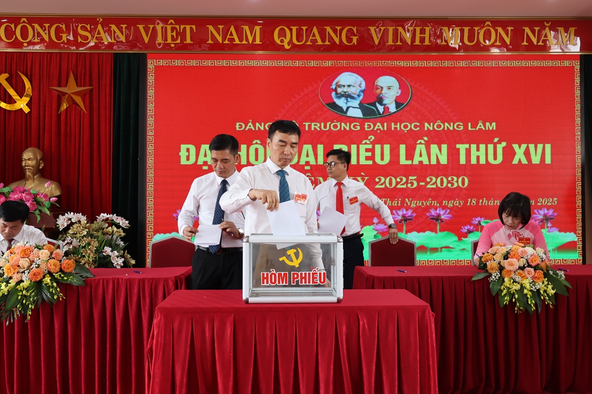 Sau 01 ngày làm việc nghiêm túc, khẩn trương với tinh thần trách nhiệm cao và thực hiện đầy đủ quy trình theo hướng dẫn của Ban Thường vụ Đảng ủy ĐHTN. Đại hội đại biểu Đảng bộ Trường Đại học Nông Lâm - Đại học Thái Nguyên lần thứ XVI đã diễn ra trong không khí dân chủ, đoàn kết, trách nhiệm và thành công tốt đẹp. Đây là sự kiện chính trị quan trọng, tạo động lực mới cho sự phát triển toàn diện, bền vững của Nhà trường trong thời kỳ đổi mới và hội nhập.
