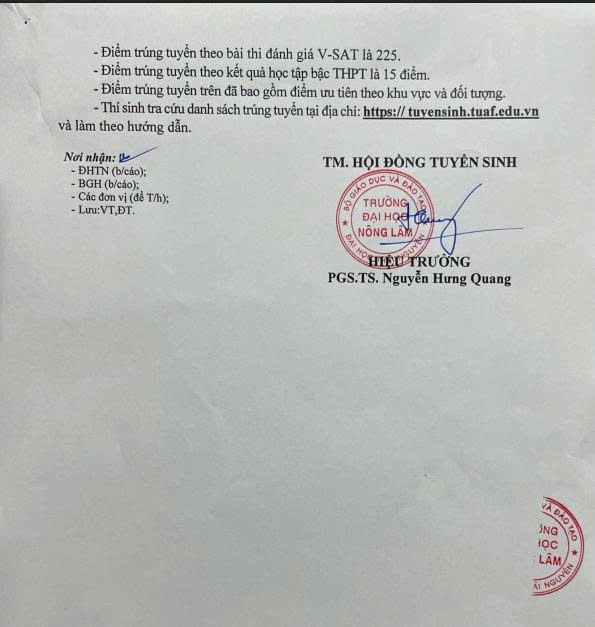 → Thông báo ngưỡng đảm bảo chất lượng đầu vào hệ đại học chính quy năm 2025. trường đại học Nông Lâm. Đại học thái nguyên (07/2025)