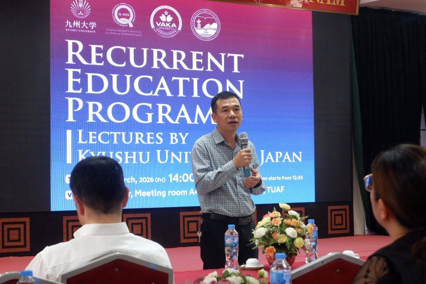 Chương trình bao gồm chuỗi bài giảng chuyên sâu do các giáo sư đến từ Trường Đại học Kyushu trình bày, tập trung vào nhiều lĩnh vực khoa học và công nghệ hiện đại. Nội dung các bài giảng đa dạng và mang tính ứng dụng cao, nổi bật như: ứng dụng học máy trong nghiên cứu vật liệu, xạ trị tiên tiến trong điều trị ung thư, đổi mới trong thiết kế phân tử, hệ thống ngân hàng Nhật Bản, cũng như các cơ hội học tập và nghiên cứu sau đại học tại Nhật Bản.