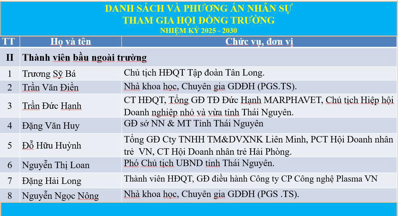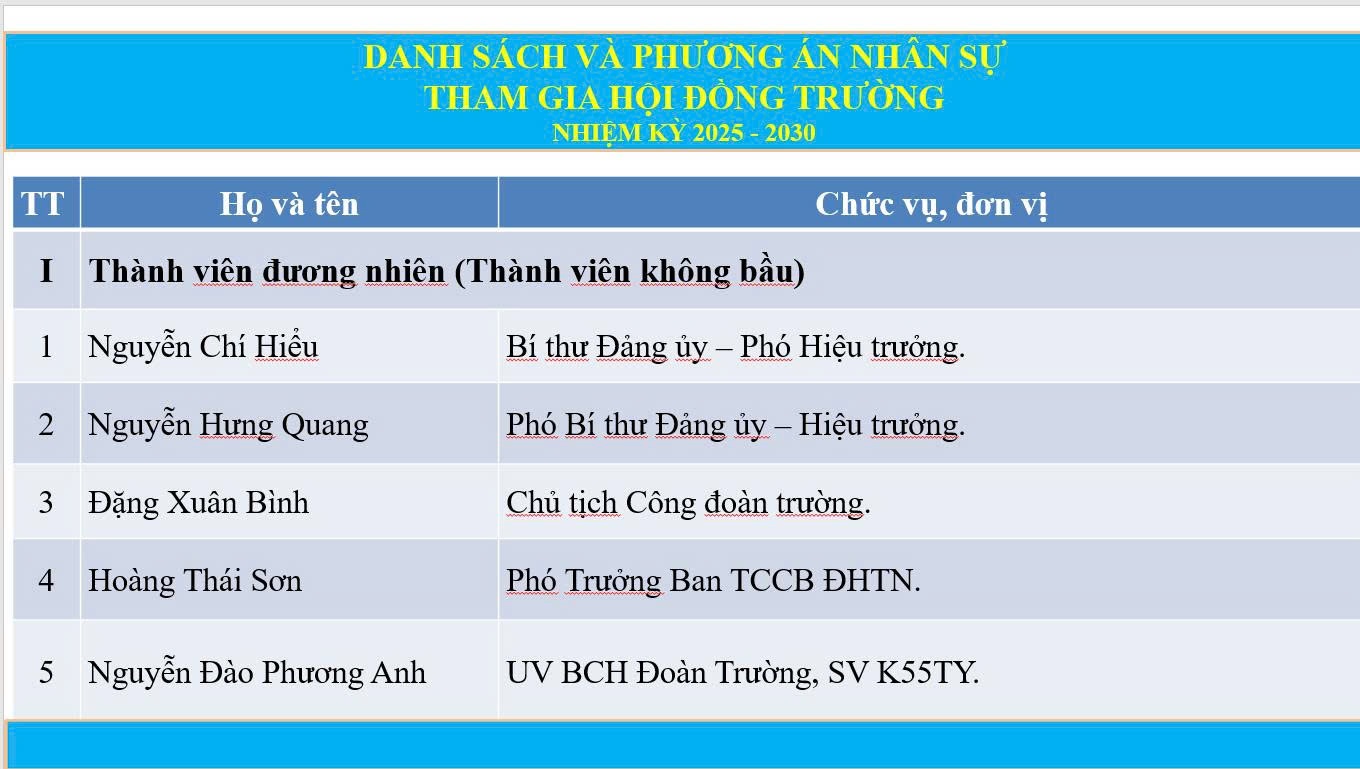 Danh sách nhân sự tham gia Hội đồng Trường nhiệm kỳ 2025-2030