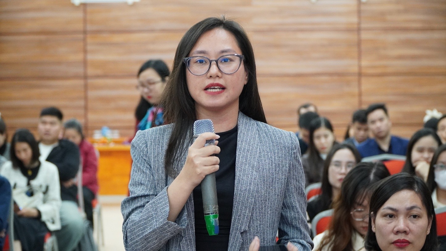 Bà: Phạm Thị Thu Hằng - Phó Tổng Giám đốc Công ty Tư vấn và Dịch vụ Đào tạo AUM Việt Nam phát biểu