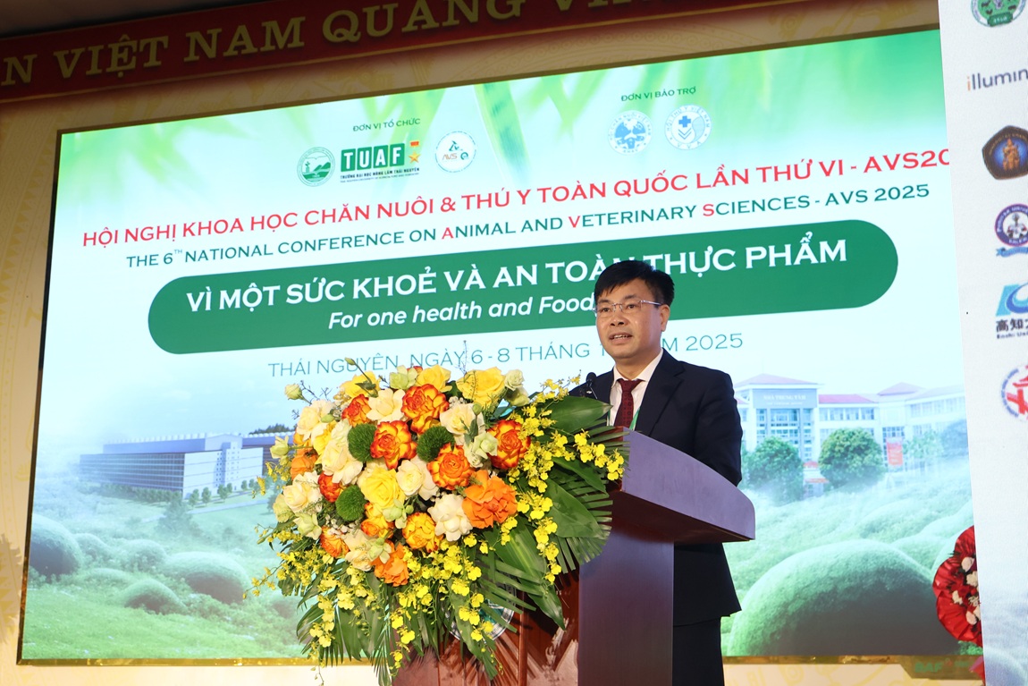 Phát biểu khai mạc Hội nghị, PGS.TS. Nguyễn Hưng Quang - Hiệu trưởng Trường Đại học Nông Lâm Thái Nguyên, đại diện Ban Tổ chức nhấn mạnh vai trò của khoa học - công nghệ trong việc nâng cao hiệu quả, tính bền vững và an toàn sinh học của ngành chăn nuôi, thú y Việt Nam trong bối cảnh biến đổi khí hậu, hội nhập quốc tế sâu rộng và yêu cầu ngày càng cao về an toàn thực phẩm, phòng chống dịch bệnh.