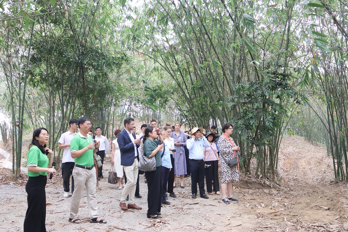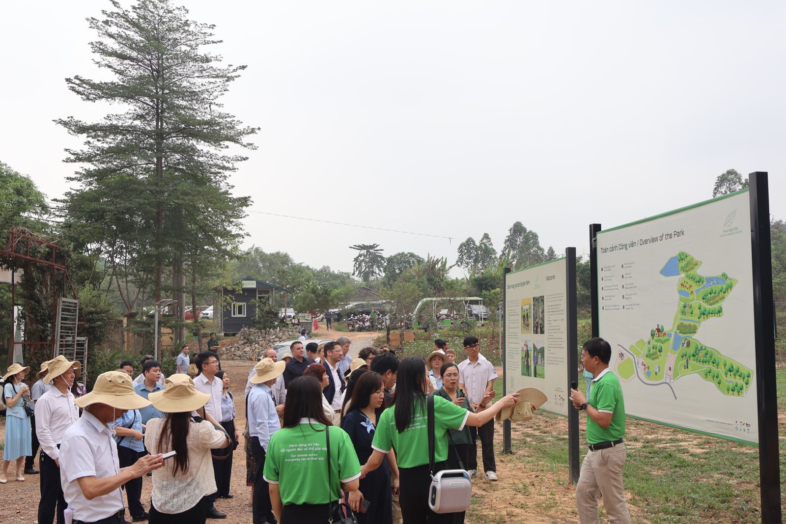 Các đại biểu đi thăm quan và trải nghiệm trong công viên khí hậu