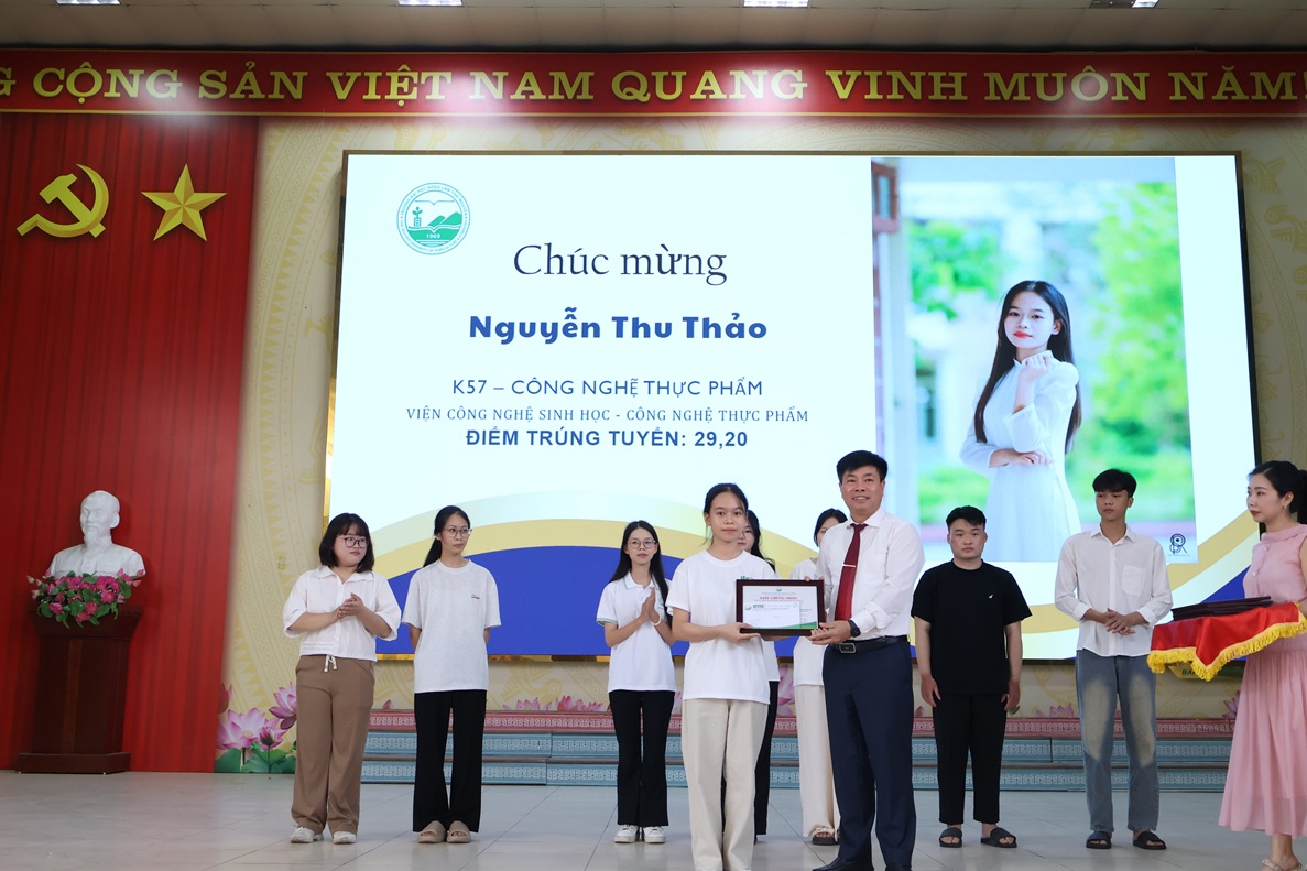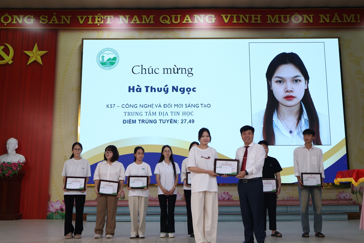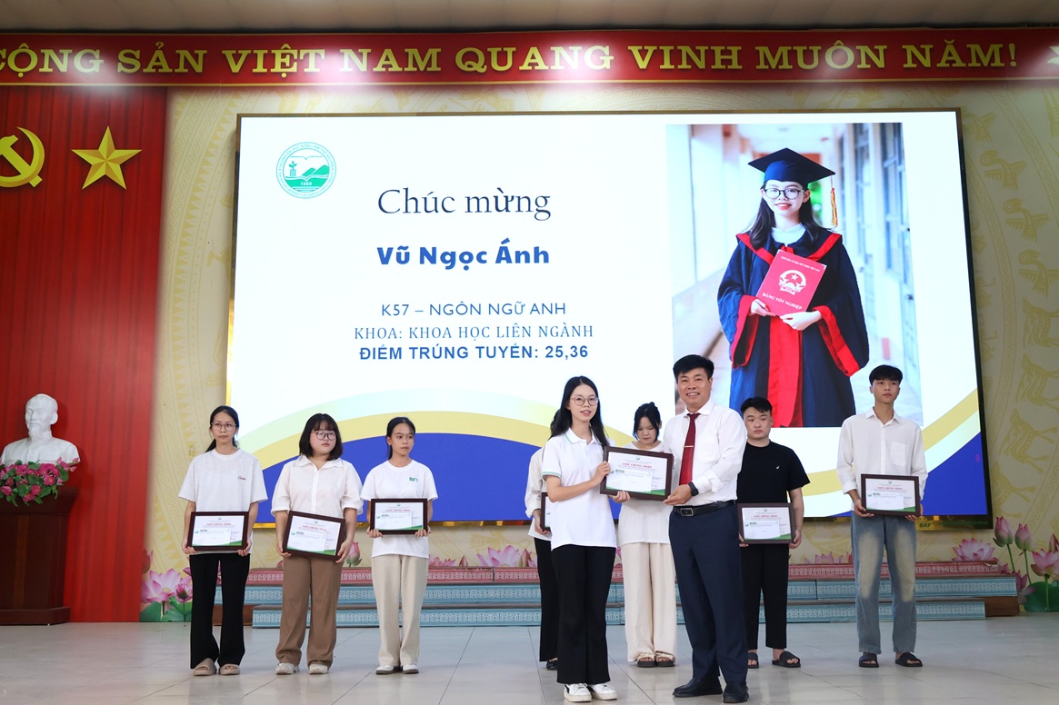 PGS.TS. Nguyễn Hưng Quang - Hiệu trưởng Nhà trường trao phần thưởng cho các sinh viên có điểm đầu vào cao