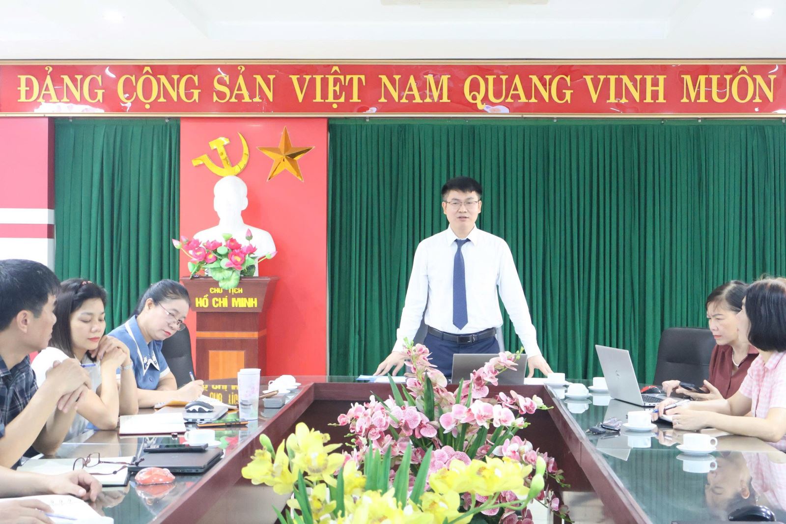 Tham dự chương trình có Ban Giám hiệu Nhà trường, Ban Chủ nhiệm các khoa, lãnh đạo các bộ môn cùng đội ngũ giảng viên trực tiếp tham gia xây dựng báo cáo tự đánh giá.