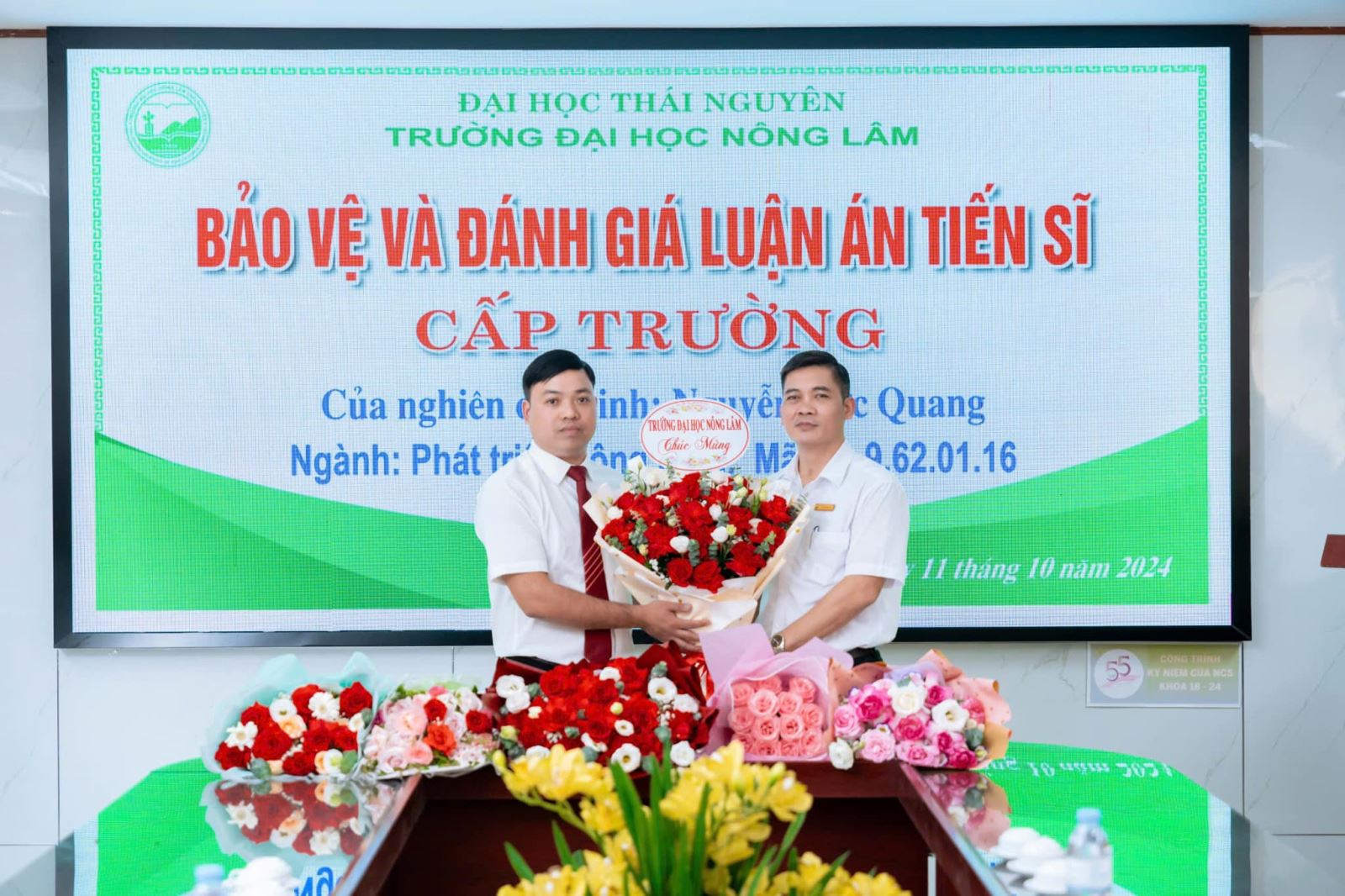Vào 11 giờ 30 phút cùng ngày, buổi bảo vệ luận án kết thúc. Hội đồng đánh giá Luận án tiến sĩ cấp Trường đã đề nghị Hiệu trưởng Trường Đại học Nông Lâm, Đại học Thái Nguyên, Bộ Giáo dục và Đào tạo công nhận học vị tiến sĩ ngành Phát triển nông thôn cho NCS. Nguyễn Đức Quang.