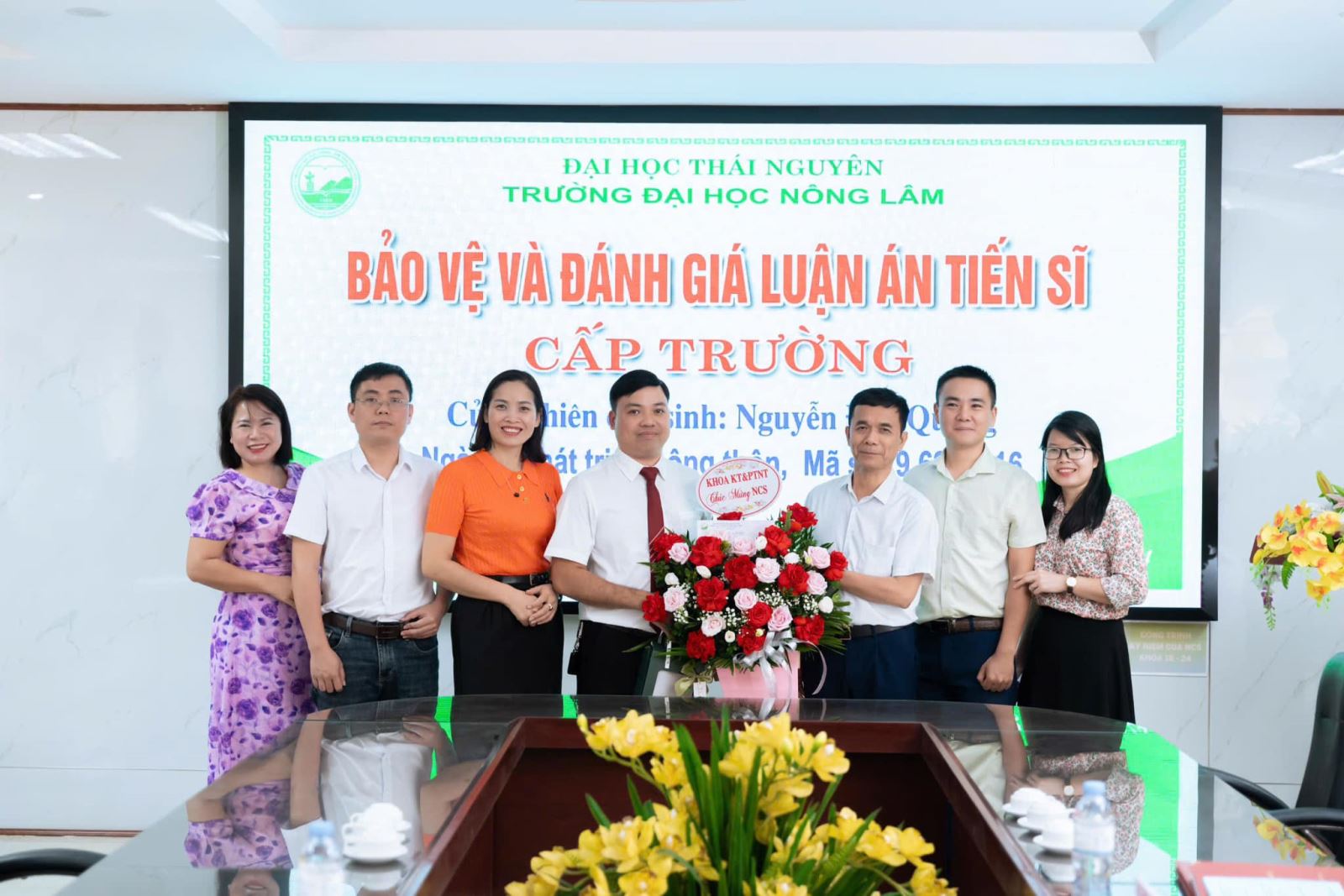 Buổi bảo vệ luận án được tiến hành đúng theo quy định của Bộ Giáo dục và Đào tạo, Đại học Thái Nguyên, và Trường Đại học Nông Lâm trong không khí trang trọng, với sự chứng kiến của tập thể cán bộ hướng dẫn khoa học, đại diện Ban chủ nhiệm khoa Kinh tế và Phát triển nông thôn, Ban Giám hiệu Trường Đại học Nông Lâm là đơn vị đào tạo, các nhà khoa học, đồng nghiệp, các NCS, học viên cao học, sinh viên, gia đình và bạn bè của NCS.