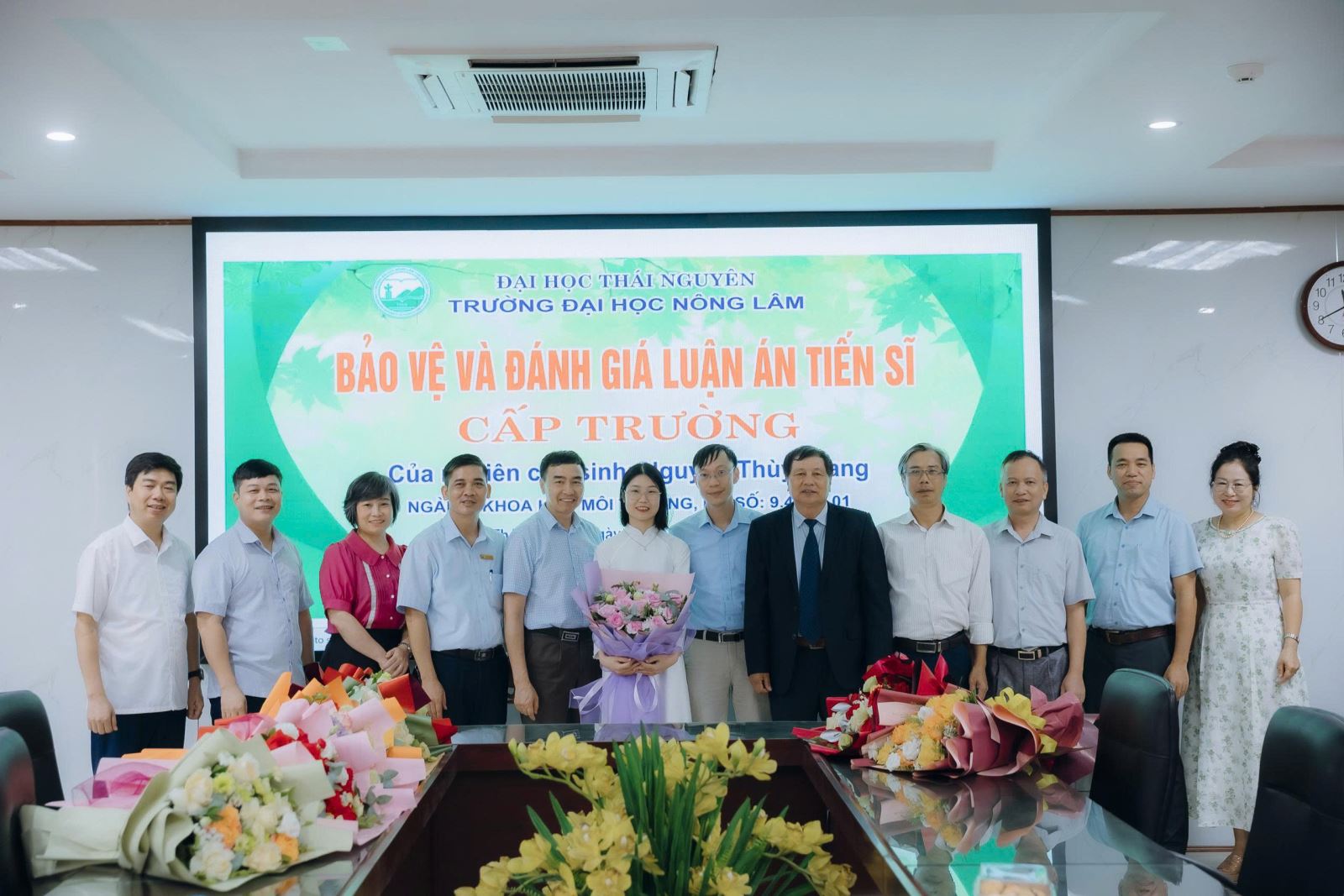 Vào 11 giờ 30 phút cùng ngày, buổi bảo vệ luận án kết thúc. Hội đồng đánh giá Luận án tiến sĩ cấp Trường đã đề nghị Hiệu trưởng Trường Đại học Nông Lâm, Đại học Thái Nguyên, Bộ Giáo dục và Đào tạo công nhận học vị tiến sĩ Khoa học Môi Trường cho NCS. Nguyễn Thùy Giang.