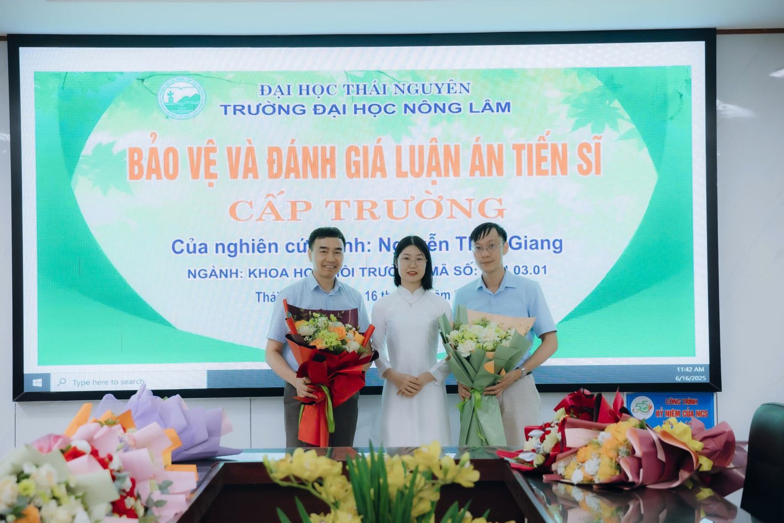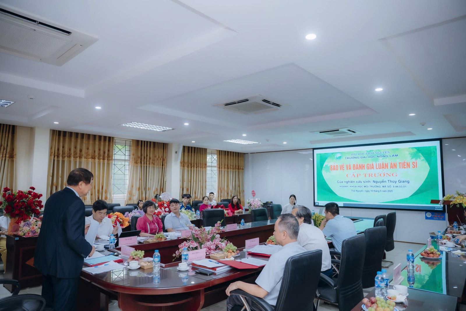 Hội đồng đánh giá luận án tiến sĩ cấp Trường thành lập theo Quyết định số 371/QĐ-ĐHNL-ĐT ngày 14 tháng 05 năm 2025 của Hiệu trưởng Trường Đại học Nông Lâm - Đại học Thái Nguyên họp ngày 16 tháng 06 năm 2025 tại Trường Đại học Nông Lâm, Đại học Thái Nguyên.