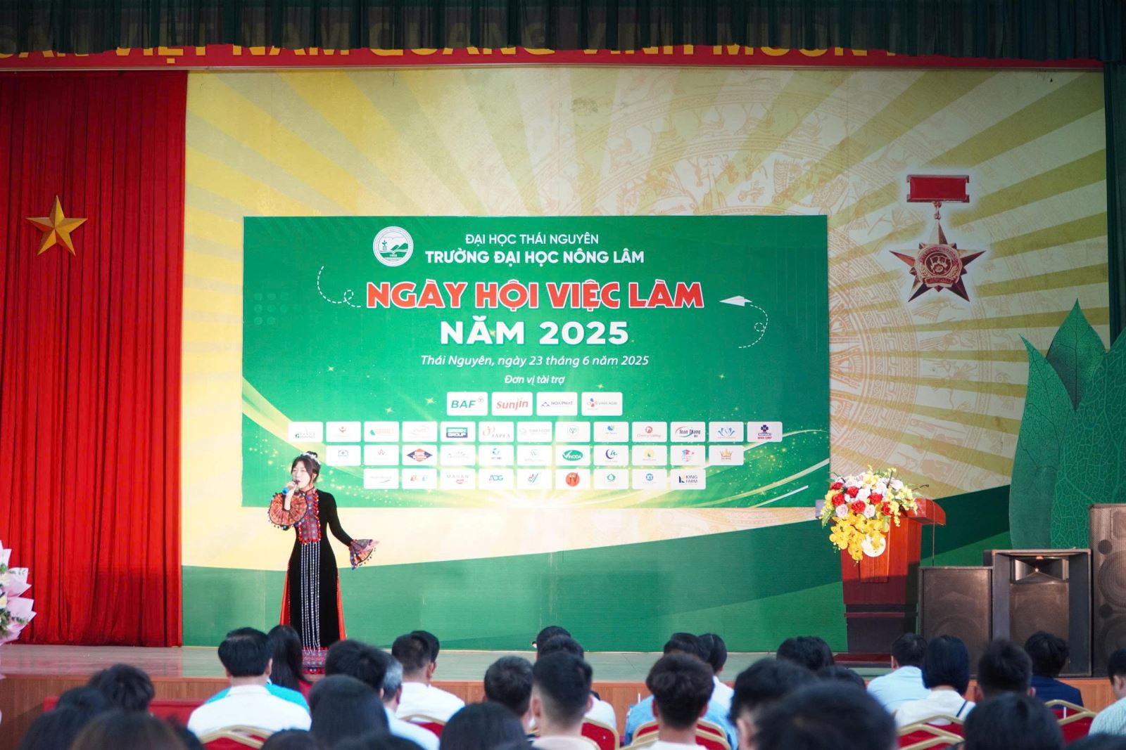 Ngay từ sáng sớm, không khí tại khuôn viên trường đã trở nên sôi động với hoạt động đón tiếp các doanh nghiệp và chuẩn bị gian hàng tuyển dụng. Mở đầu chương trình là các tiết mục văn nghệ đặc sắc đến từ Đội văn nghệ xung kích, khuấy động tinh thần cho toàn bộ sự kiện.
