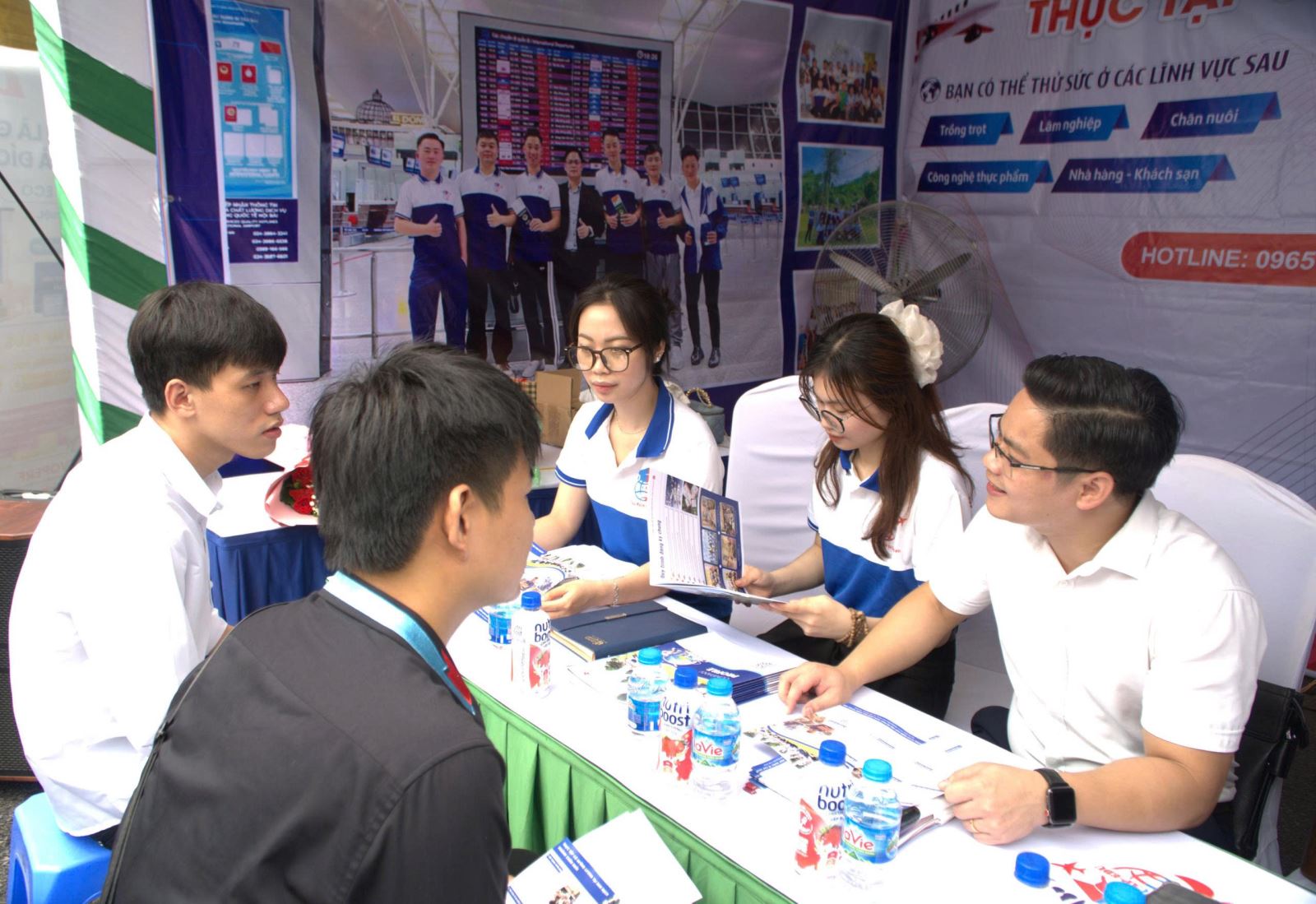 Sau phần lễ trang trọng, sinh viên đã tham gia tích cực tại 41 gian hàng tư vấn và tuyển dụng của các doanh nghiệp. Nhiều bạn trẻ đã mạnh dạn tiếp cận nhà tuyển dụng, trao đổi về vị trí công việc, yêu cầu kỹ năng cũng như cơ hội thực tập, việc làm.