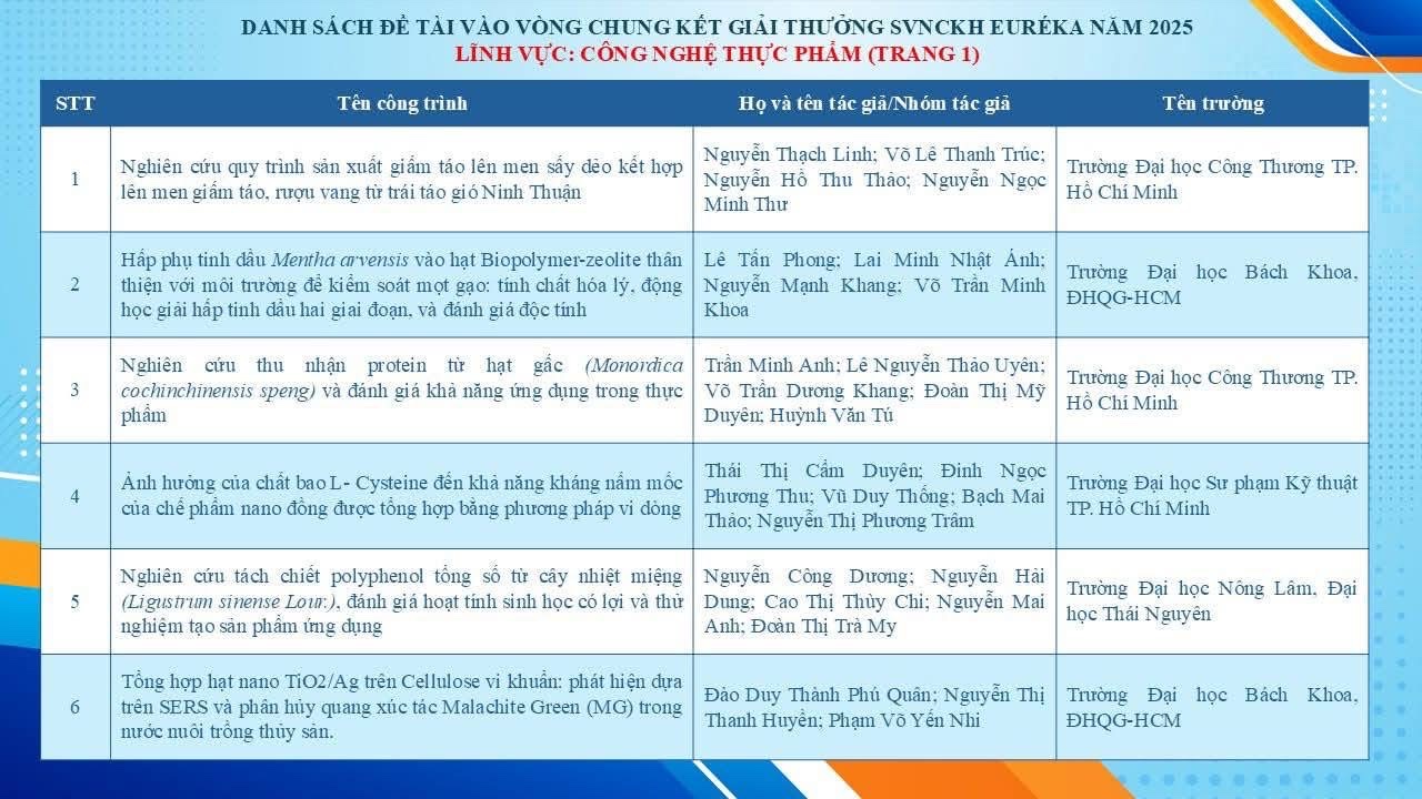 Đây là năm thứ 6 liên tiếp Viện CNSH - CNTP có đề tài lọt vào Vòng Chung kết - một thành tích đáng tự hào, thể hiện tinh thần đam mê nghiên cứu, sáng tạo và không ngừng vươn lên của sinh viên Trường Đại học Nông Lâm cũng như sự tận tâm của các thầy cô hướng dẫn.