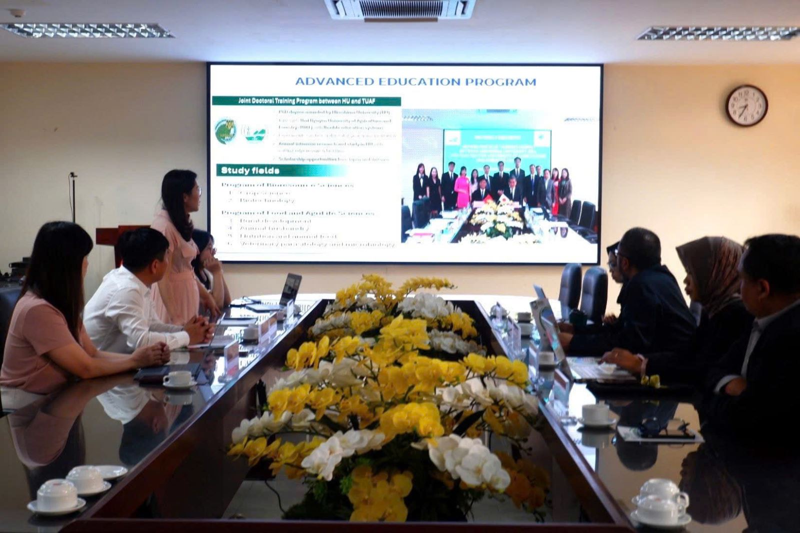 Tham dự buổi làm việc, về phía Trường Đại học Nông Lâm Đại học Thái Nguyên (TUAF) có PGS.TS. Nguyễn Hưng Quang - Hiệu trưởng Nhà trường, cùng sự tham gia của TS. Nguyễn Thị Giang - Phó Trưởng Phòng Khoa học Công nghệ và Đối ngoại và TS. Đào Thị Thanh Huyền - Phó Trưởng Văn phòng Chương trình Tiên tiến.