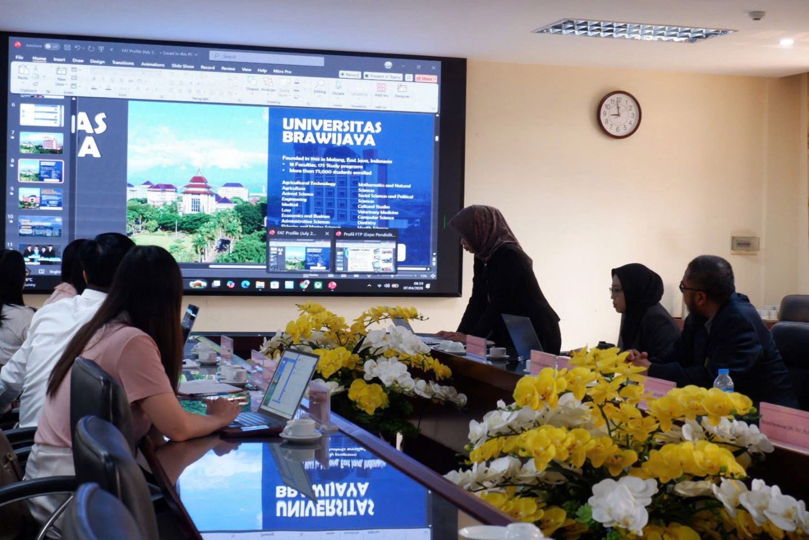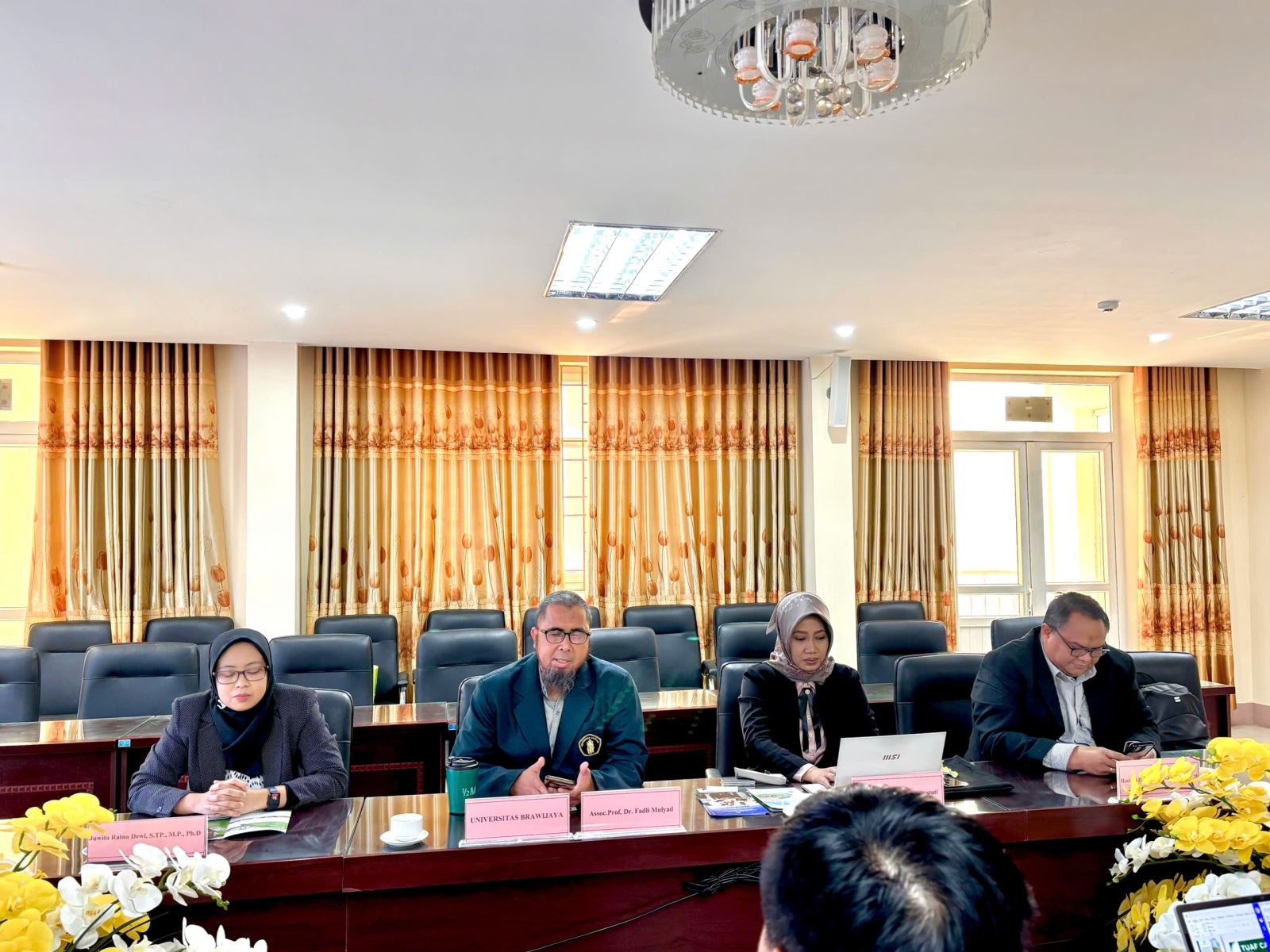 Về phía Trường Đại học Brawijaya (Indonesia), đoàn công tác do PGS. TS. Fadli Mulyadi– Phó Giám đốc phụ trách Hành chính và Tài chính, PSDKU-UB làm trưởng đoàn. Tham gia đoàn còn có PGS. Endrika Widyastuti – Phó Trưởng khoa phụ trách học thuật, Khoa Chăn nuôi (FAT-UB) cùng các giảng viên: TS. Hariadi Darmawanm và TS. Juwita Ratna Dewi.