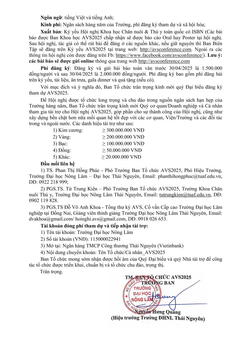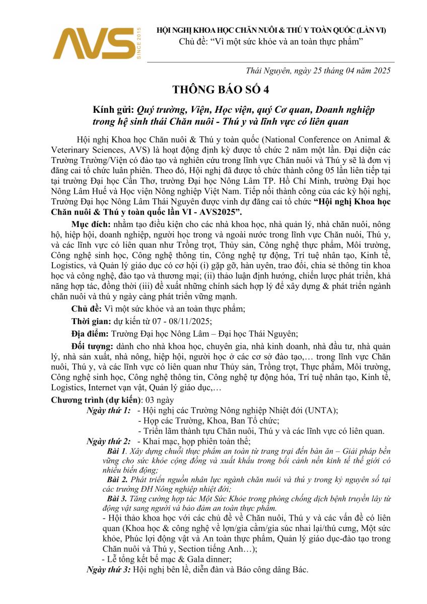 Thông báo Hội nghị Khoa học Chăn nuôi & Thú y toàn quốc (National Conference on Animal & Veterinary Sciences, AVS)