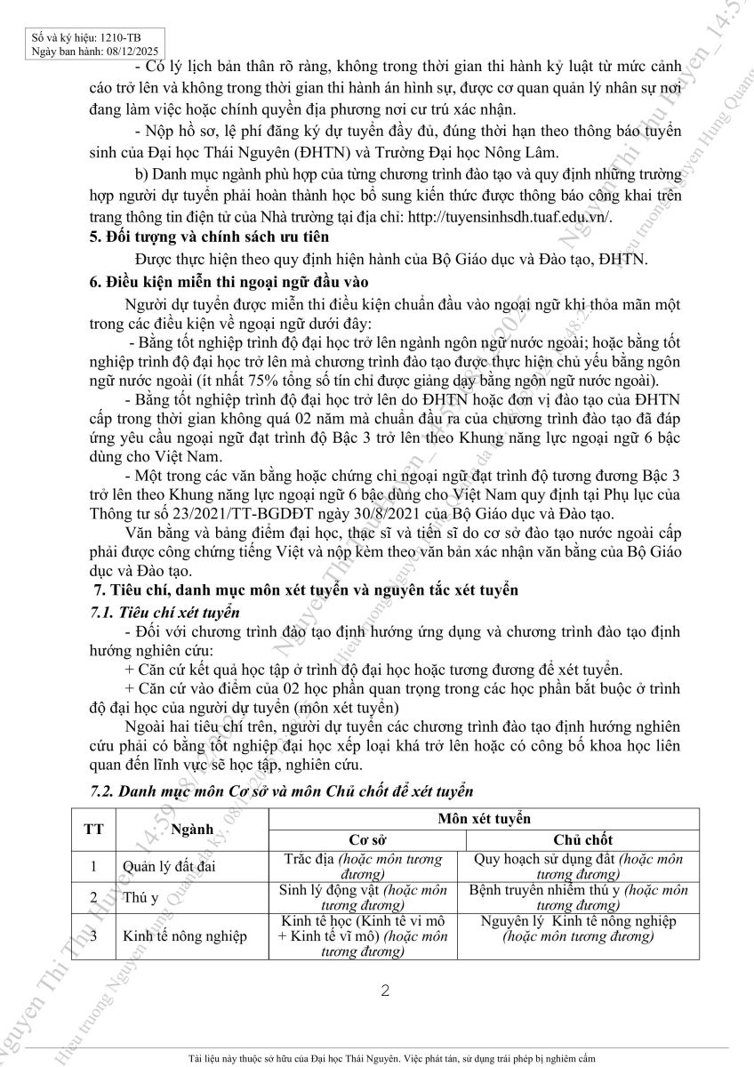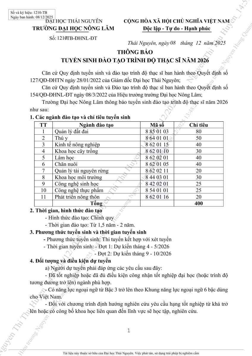 → Thông tin tuyển sinh đại học chính quy năm 2026 - trường đại học Nông Lâm Thái Nguyên (03/2026)