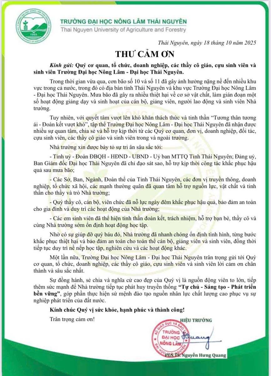 Kính gửi: Quý cơ quan, tổ chức, doanh nghiệp, các thầy cô giáo, cựu sinh viên và sinh viên Trường Đại học Nông Lâm - Đại học Thái Nguyên