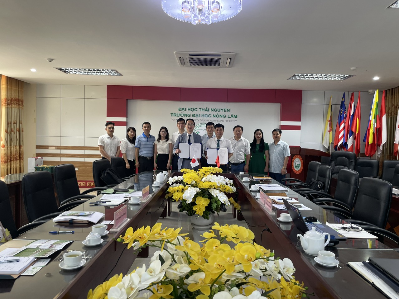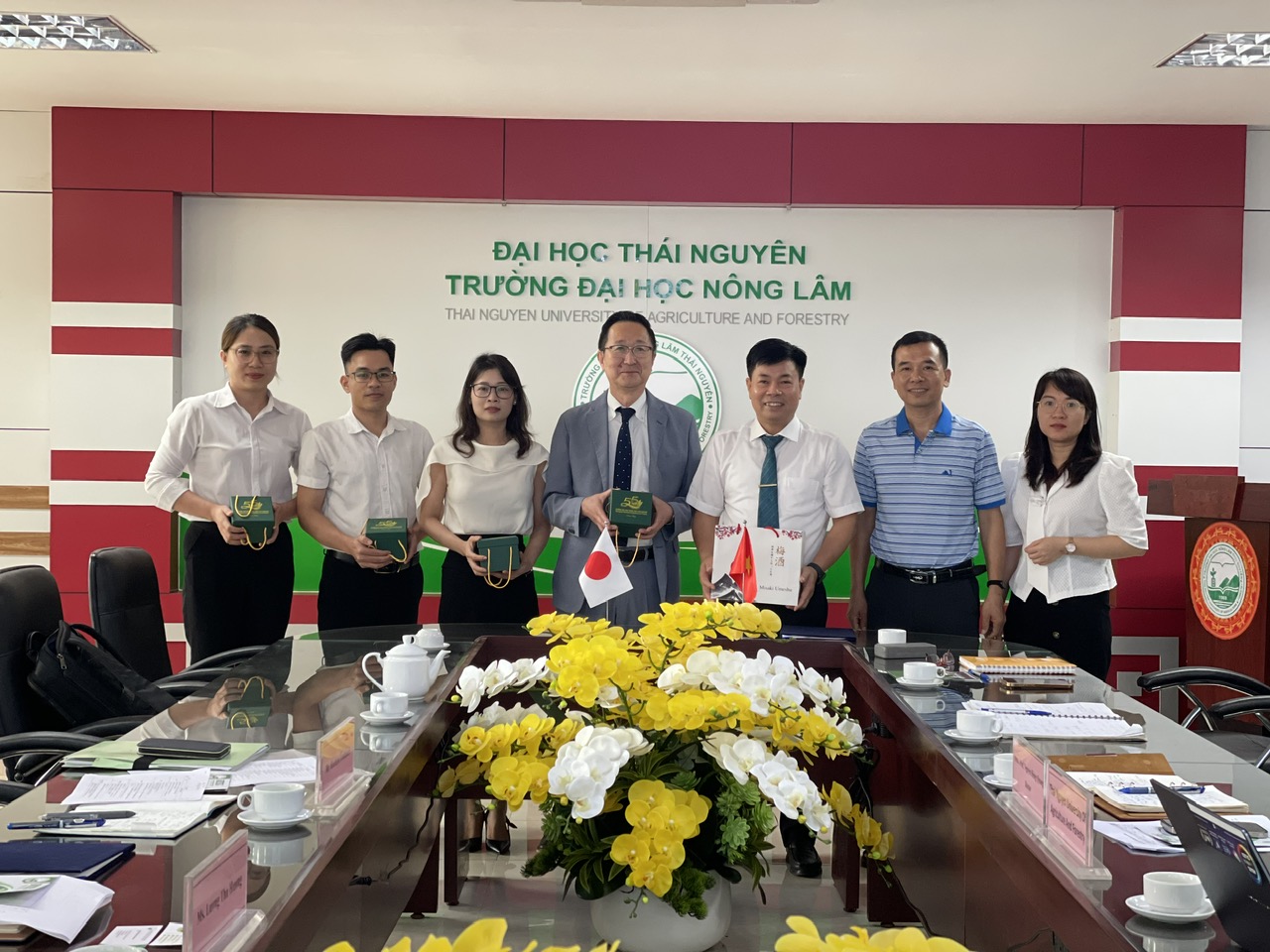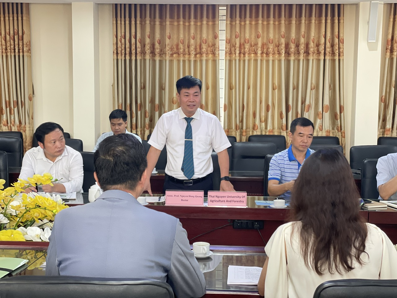 Tham dự buổi làm việc, về phía Trường Đại học Nông Lâm có PGS.TS. Nguyễn Hưng Quang - Hiệu trưởng Nhà trường; TS. Dương Văn Thảo, Trưởng phòng Khoa học Công nghệ và Hợp tác quốc tế; TS. Nguyễn Thị Giang – Phó trưởng phòng KHCN & HTQT; cùng đại diện lãnh đạo các đơn vị: Trung tâm Tuyển sinh và Truyền thông, Khoa Quản lý Tài nguyên, Khoa Nông học, Khoa Lâm nghiệp, Khoa Chăn nuôi thú y, Viện CNSH&CNTP cùng các thầy cô quan tâm.