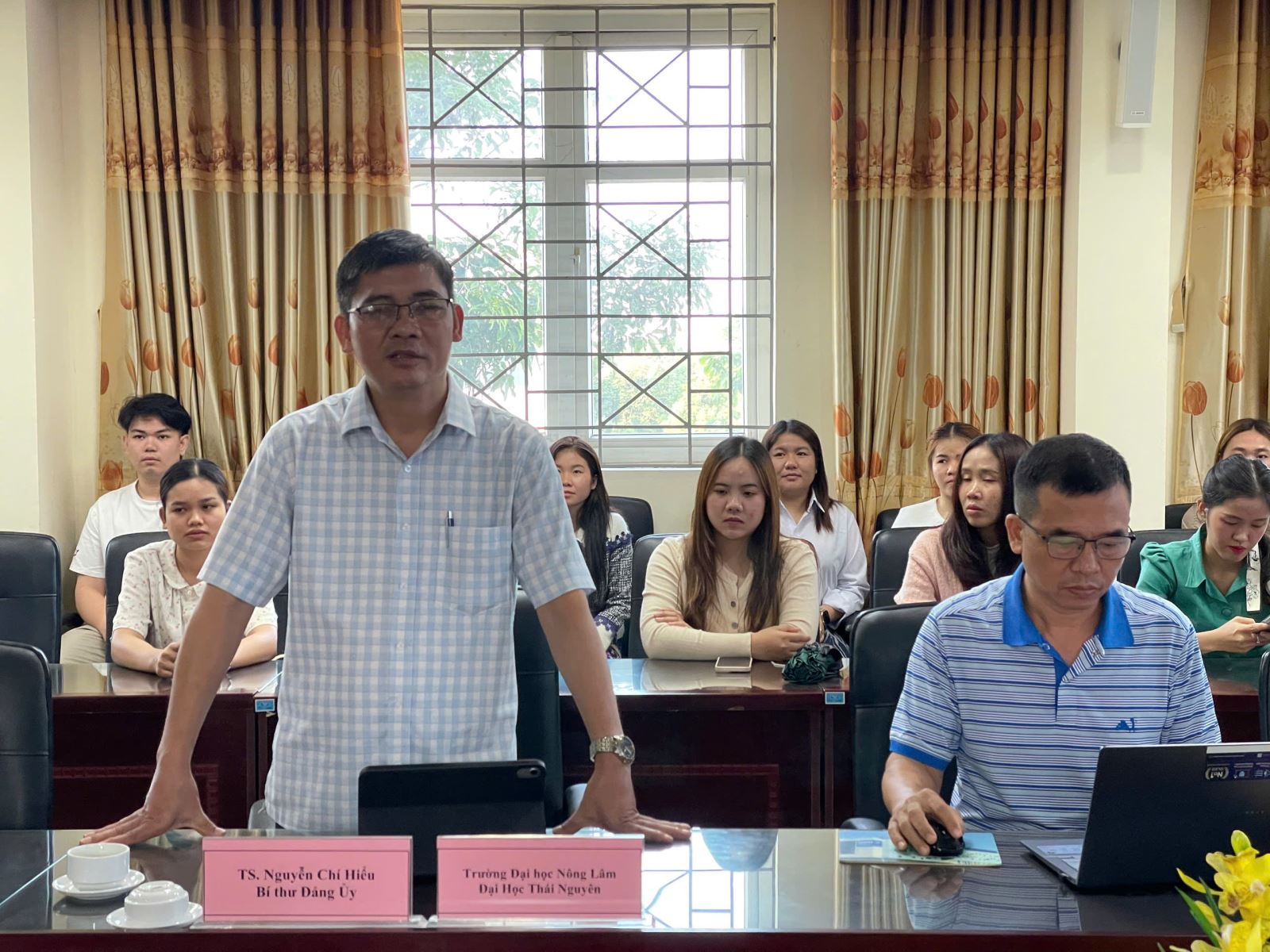 Về phía Trường Đại học Nông Lâm có: TS. Nguyễn Chí Hiểu - Bí thư Đảng ủy, Phó Hiệu trưởng Nhà trường, cùng lãnh đạo các phòng, ban và các bạn lưu học sinh Lào đang học tập tại Trường.
