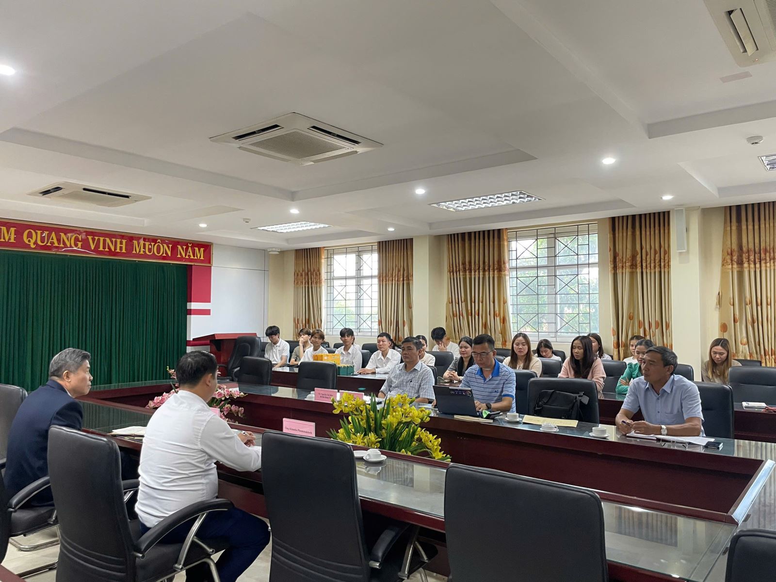 Buổi làm việc diễn ra trong không khí thân mật, cởi mở và hiệu quả, thể hiện tình cảm gắn bó và sự quan tâm sâu sắc của Đại sứ quán Lào đối với công tác đào tạo lưu học sinh tại Việt Nam, góp phần củng cố tình đoàn kết đặc biệt Việt Nam - Lào mãi xanh tươi, bền vững.