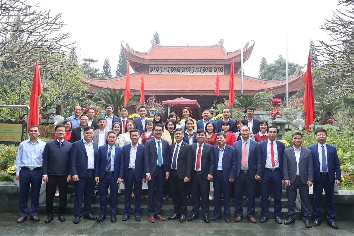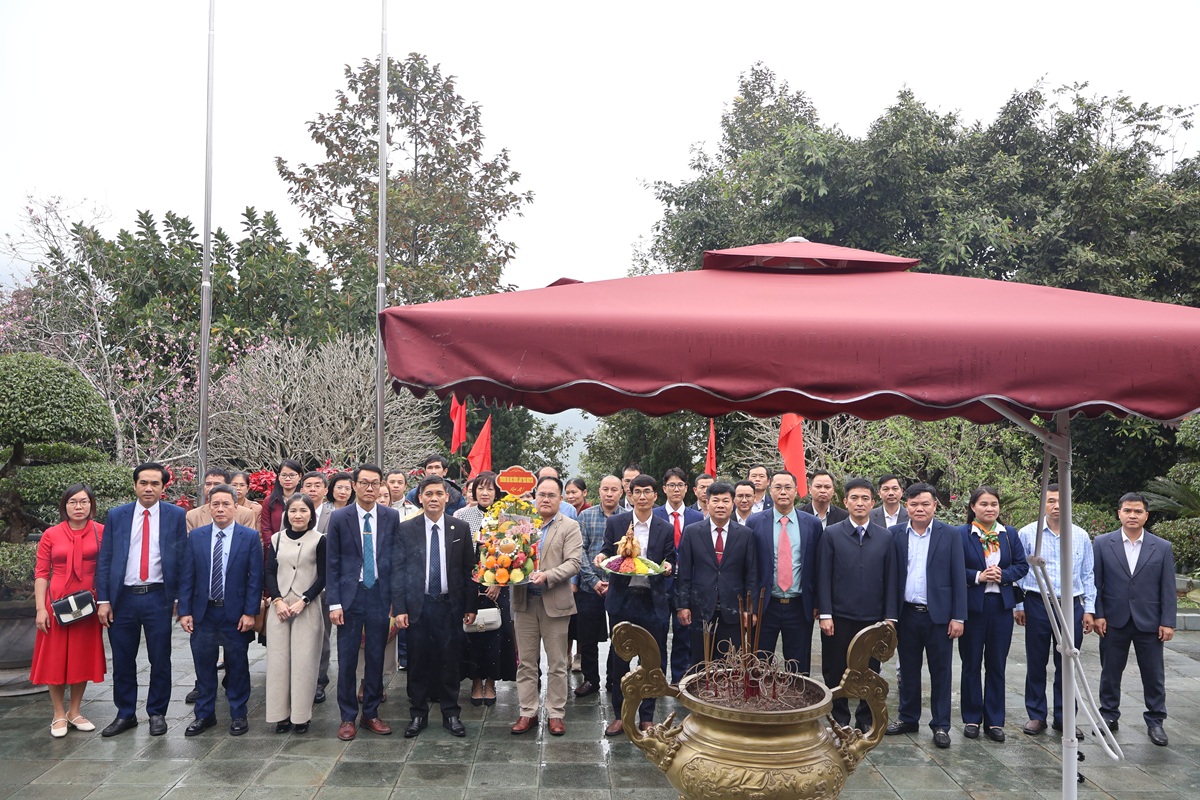 Ngay sau chương trình gặp mặt đầu xuân, đoàn công tác của Nhà trường đã tổ chức lễ dâng hương tại Khu Di tích lịch sử ATK Định Hóa - nơi Chủ tịch Hồ Chí Minh và Trung ương Đảng, Chính phủ đã sống và làm việc trong thời kỳ kháng chiến chống thực dân Pháp.