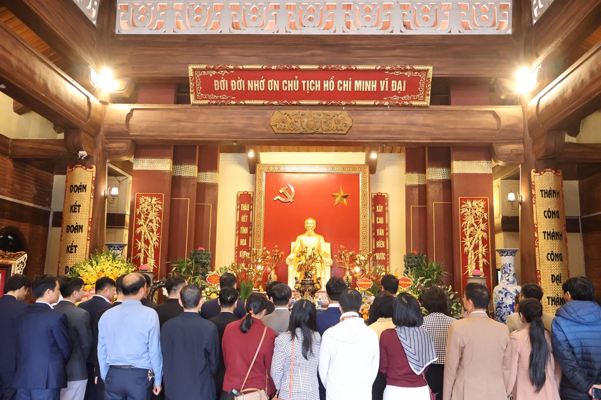 Trong không khí trang nghiêm, đoàn đại biểu đã thành kính dâng hương, tưởng niệm Chủ tịch Hồ Chí Minh và các anh hùng liệt sĩ, bày tỏ lòng biết ơn sâu sắc đối với những hy sinh to lớn vì sự nghiệp giải phóng dân tộc, thống nhất đất nước.