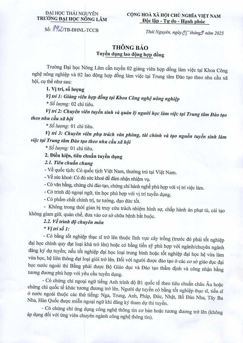 → Xét tuyển bổ sung hệ đại học chính quy năm 2025 vào trường Đại học Nông Lâm, Đại học Thái Nguyên (08/2025)